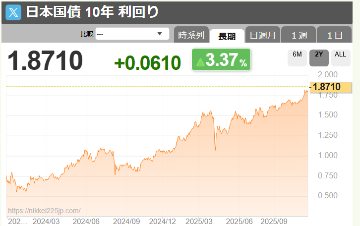 日本の長期金利が上昇しています。背景には、新政権による補正予算に伴う国債増発懸念や、国債市況における需給悪化があると考えられます。日本の債券先物は売り優勢となり、利上げ観測を織り込む形となっています。